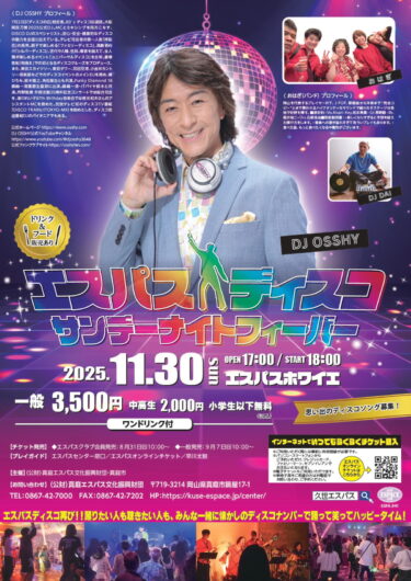 📀ホテルグランヴィア岡山でのDISCO PARTY以来、久々にDISCO SETでDJします🎶