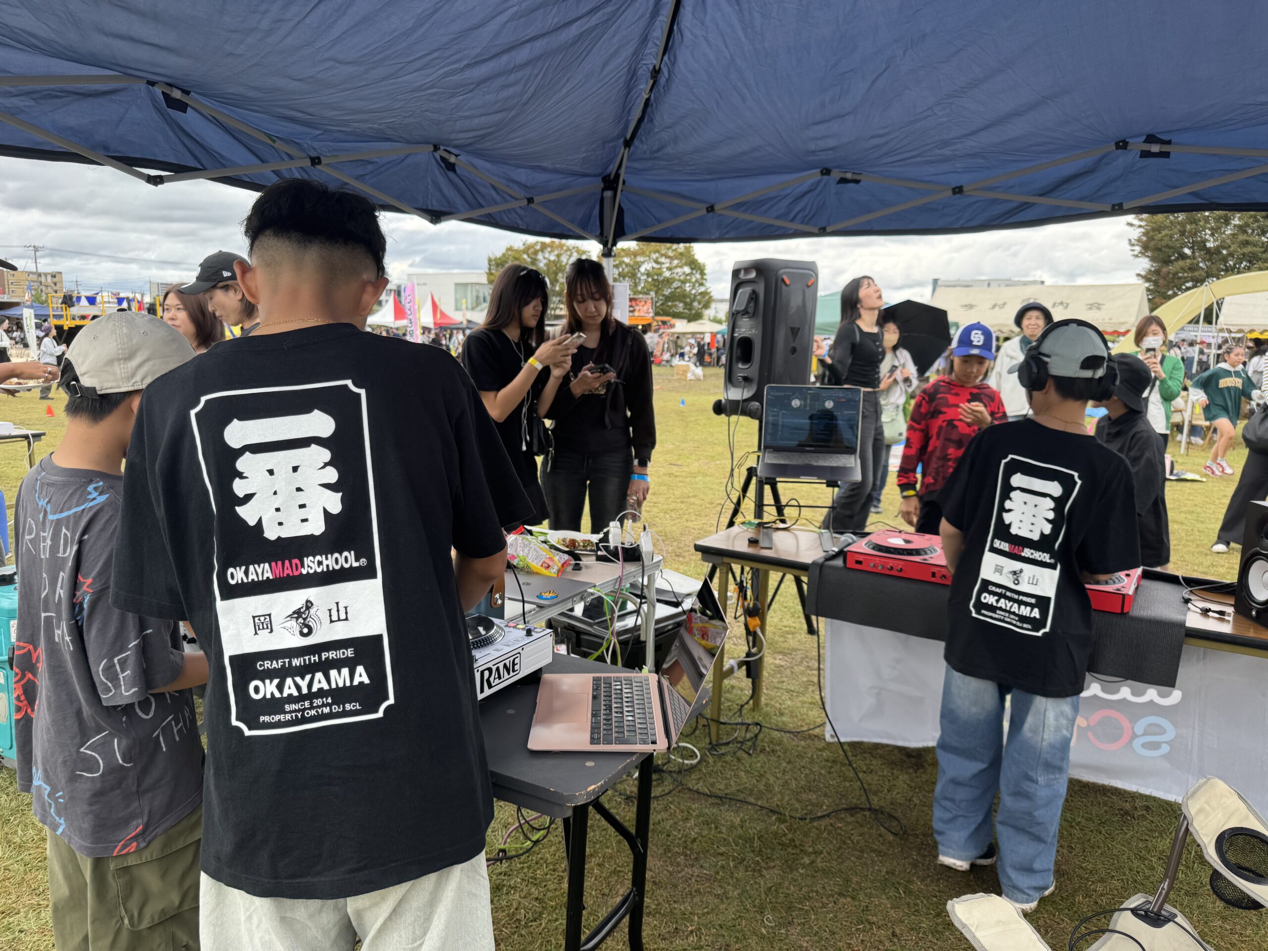 今回は岡山DJスクールブースにてDJ体験レッスンと、総勢11名の生徒さん達がDJを披露してくれました!